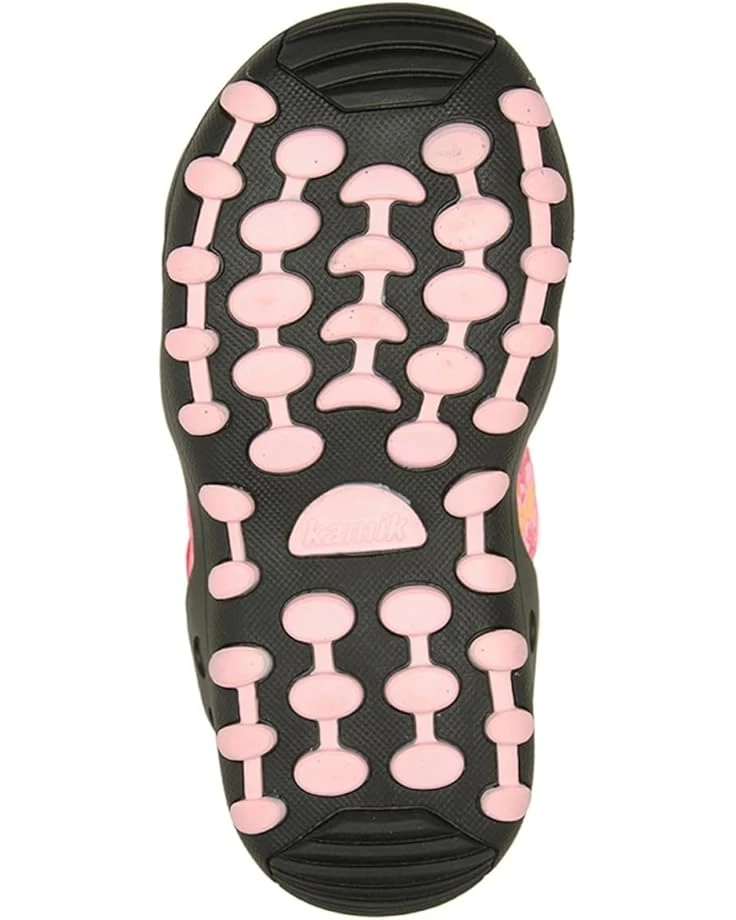 - Allow your child to go outdoors wearing colorful Kamik® Kids Crab Print footwear, and enjoy fun moments. The footwear has synthetic leather upper, polyester lining, and EVA insole. An elastic lace panel with hook-and-loop strap and pull-tabs ensure easy on and off. A bump toe and side cutout design allow breathability with protection.