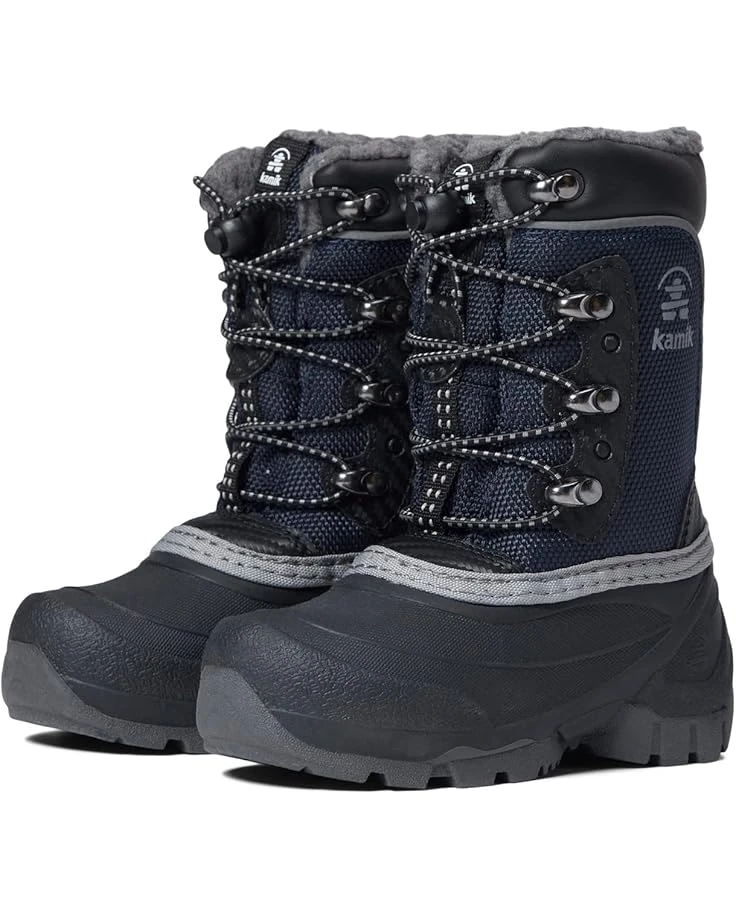 - The cold-weather blues won’t hold her back with the plush Kamik® Kids Luke winter boots. The mid-calf snow boots are crafted in a waterproof nylon upper with an attached faux-fur lining.
