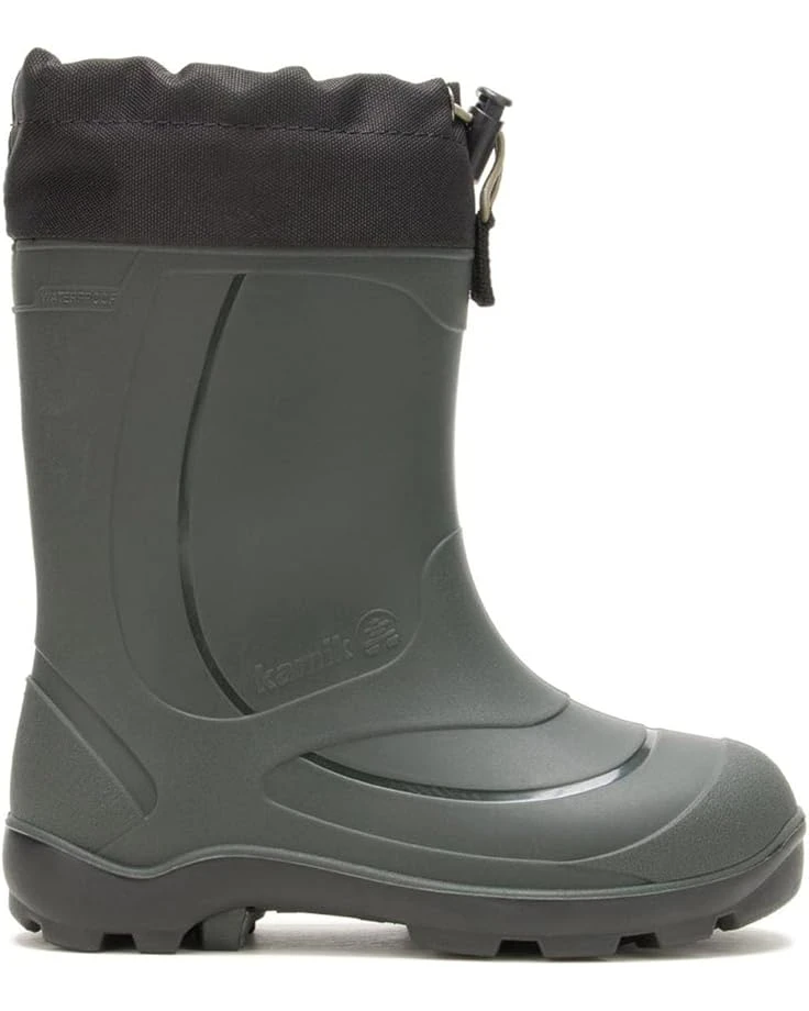 - The lightweight and waterproof Kamik® Kids Snobuster 1 Boots are made to give you lasting comfort and better traction as you hit rainy or snowy terrains in style. They are designed with synthetic upper, adjustable snow collar and easy-grab lace lock, 6 mm thermal guard removable liner, moisture wicking lining, and comfortable footbed. The round toe design, mid-calf length, and the use of proprietary technology offers better traction and increased flexibility.