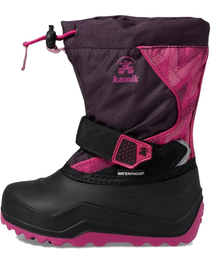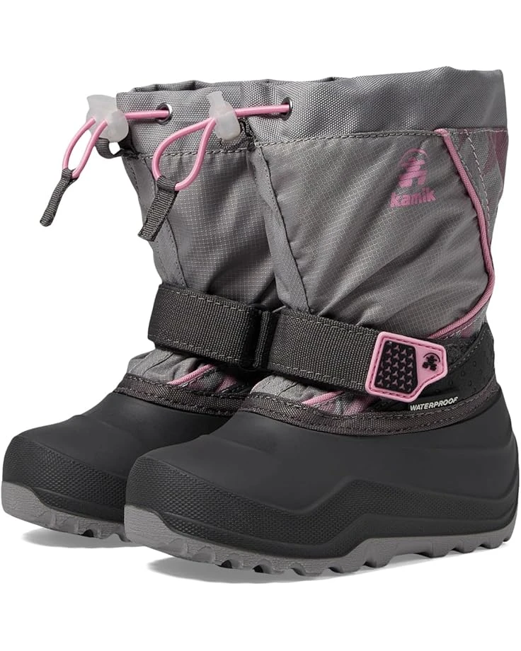 - Want to put a smile on your kiddo’s face? Pick up the Kamik® Kids Snowfall P2 boots to keep their tiny toes warm, even when it’s -40°F outside. These insulated calf-high boots feature Pull n’ Lock technology for a snug fit while the adjustable snow collar keeps the snow out. The 97% recycled Zylex removable liner, rubber insole, and polyester lining make them a durable choice. With a lightweight synthetic rubber outsole and seam-sealed waterproof nylon upper, these kids’ snow boots are ready to race up the toboggan hill.