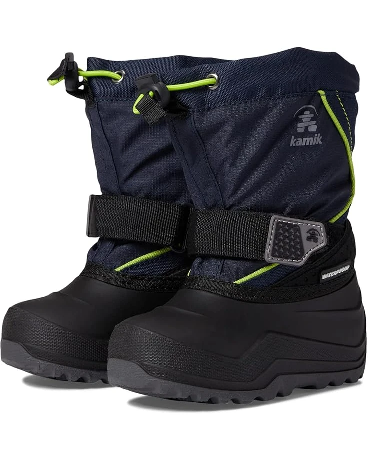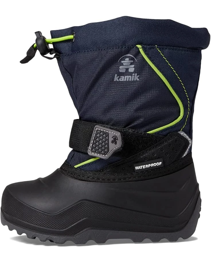 - Help them trek through the winter season with ease in the dependable Kamik® Kids Snowfall boots. The tall snow boots are crafted in a seam sealed, waterproof nylon upper and an adjustable toggle collar to keep wet elements out.