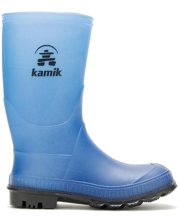 - Let your little one enjoy in the muddy puddles wearing the Kamik® Kids Stomp Print. This pair of sun sealed waterproof boots are built to keep you dry in every season. Crafted from synthetic rubber upper, this pair of boots features zippered closure, low-stacked heel, brand detailing on one side, and round toe design.