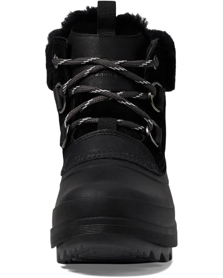- Take on the slippery sidewalks while staying stylish in a pair of Kamik® Lauren F trendy winter boots. Crafted from seam-sealed waterproof genuine suede and leather upper, and moisture-wicking fleece lining, these boots have high-traction soles with deep lugs and GripXT to keep you on your feet no matter the weather on your girls’ night out. With HEAT-MXâ„¢ sustainable thermal insulation, your toes will stay warm in low temperatures. featuring round toe, lace-up closure, and ankle-high silhouette.