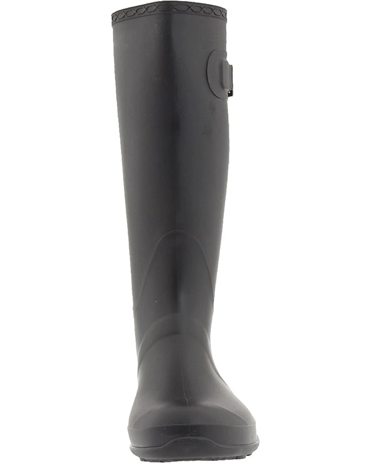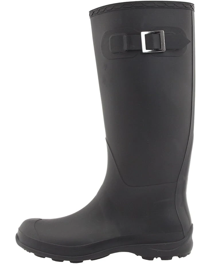 Good boot, well-made and relatively light-weight for a rain boot. What I especially liked was how the rubber bends gracefully at the ankle and doesn’t get that goofy bulge or buckled look when you walk. This could be due to the nice rubber it is made of and/or the fact that it is not super wide or bulky at the ankle. I wear an 8.5-9 and the 9 fit great. I have average to slim calves and the shaft fit me (with skinny jeans tucked in) just fine, with a little room to spare, but not too much. The buckle seems purely decorative and doesn’t really adjust anything but that was okay with me. I really wanted like an eggplant purple. I thought I could get by with gray but it’s just too dull for me so unfortunately I’ll be sending them back for something with a little more pop. Kamik seems like a good company with good ethics and a quality product. That is a bonus!