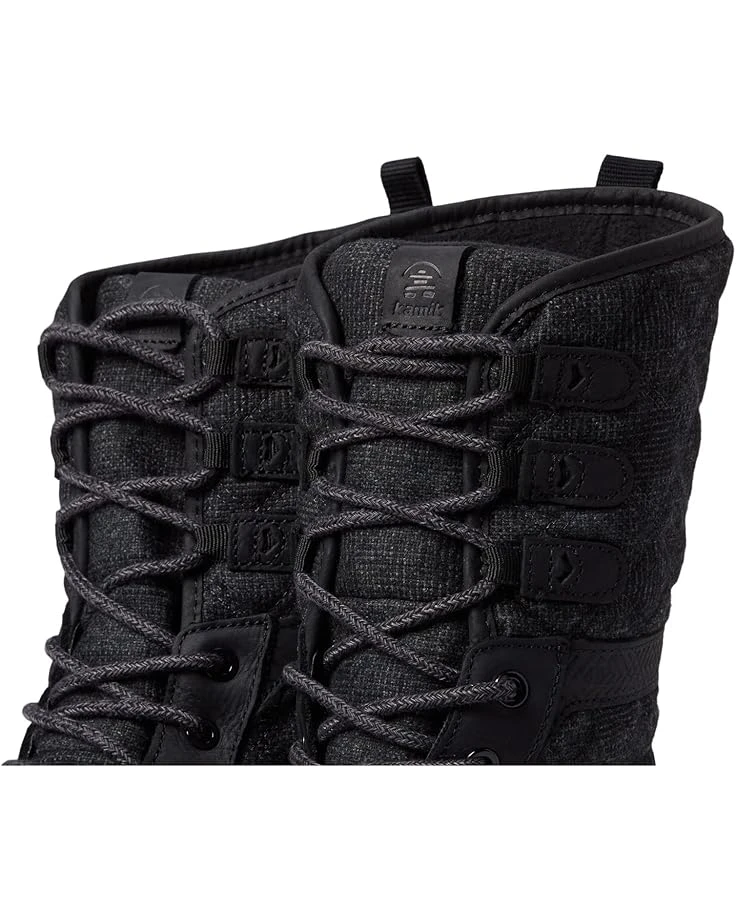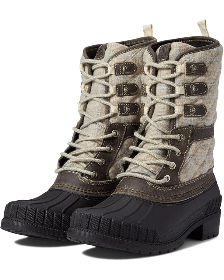 - Combination of waterproof leather and water-resistant flannel/knit quilted upper.